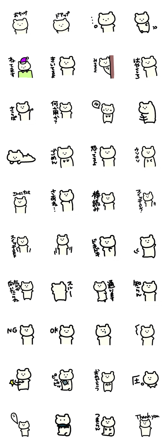 無表情クマさん ひーちゃん コメントをどうぞ あえて表情を出さない白いクマが、何かを伝えようとしています。 このスタンプどう思う?!↓クリックで投票♪好き (0)かわいい (0)かっこいい (0)おもしろい (0)使いやすそう (0)欲しい (0)萌え (0)ほっこりする (0)おしゃれ (0)ゆるい (0)こわい (0)ウザい (0)キモい (0)ムカつく (0)持ってる (0)癒される (0)セクシー (0)個性的 (0)私は買わない (0)誰かプレゼントして! (0) 購入・プレゼントする Facebookでシェア Twitterでシェア
