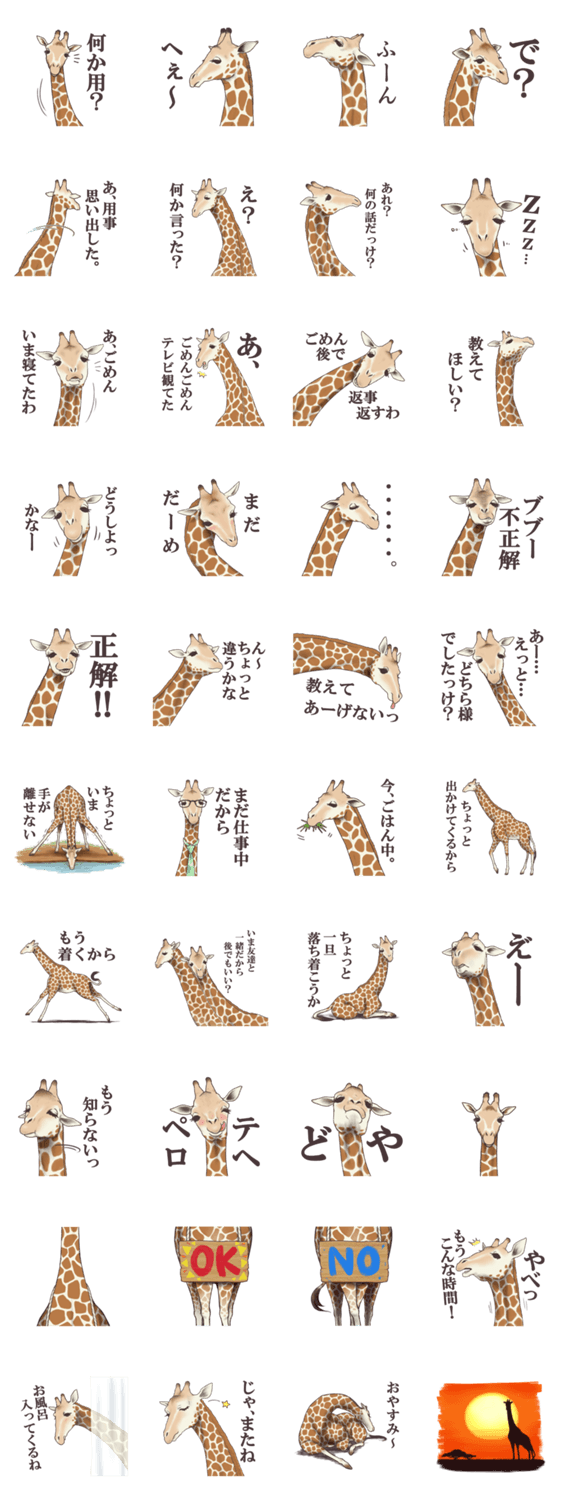 焦らしたいその時に ma2co(マツコ) コメントをどうぞ 特技は焦らすこと。キリンさんがあの手この手で会話を焦らします。 このスタンプどう思う?!↓クリックで投票♪好き (0)かわいい (0)かっこいい (0)おもしろい (0)使いやすそう (0)欲しい (0)萌え (0)ほっこりする (0)おしゃれ (0)ゆるい (0)こわい (0)ウザい (0)キモい (0)ムカつく (0)持ってる (0)癒される (0)セクシー (0)個性的 (0)私は買わない (0)誰かプレゼントして! (0) 購入・プレゼントする Facebookでシェア Twitterでシェア