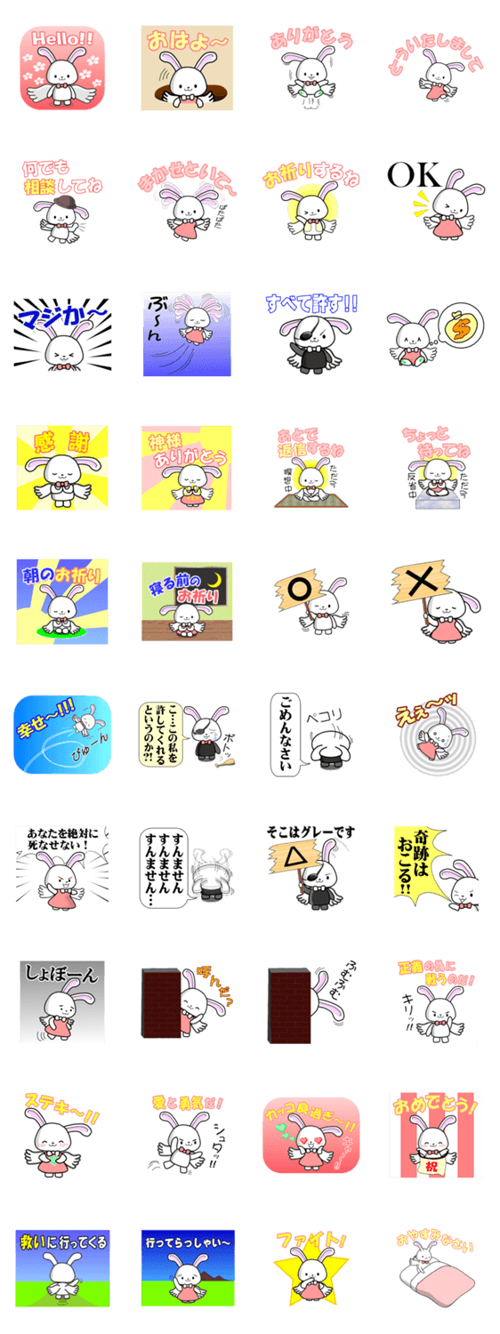 熱血!信仰うさぎ Iwasa Katsuaki コメントをどうぞ 熱い情熱を持つ信心深いうさぎのスタンプです。愛と勇気に満ちた男の子ウサギと正義感みなぎる女の子ウサギと悪から足を洗いたてのウサギの、癒し系の可愛いスタンプです。 このスタンプどう思う?!↓クリックで投票♪好き (0)かわいい (0)かっこいい (0)おもしろい (0)使いやすそう (0)欲しい (0)萌え (0)ほっこりする (0)おしゃれ (0)ゆるい (0)こわい (0)ウザい (0)キモい (0)ムカつく (0)持ってる (0)癒される (0)セクシー (0)個性的 (0)私は買わない (0)誰かプレゼントして! (0) 購入・プレゼントする Facebookでシェア Twitterでシェア
