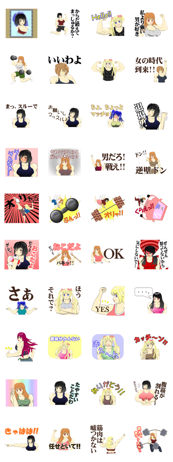 燃える萌えマッスル女ー可愛い筋肉女の子達 Iwasa Katsuaki コメントをどうぞ 強い女は美しい!体育会系筋肉女子スタンプ。またの名を猛女スタンプ。このスタンプによって強い女性の時代が幕開きし、このスタンプは伝説のスタンプとなることでしょう。 このスタンプどう思う?!↓クリックで投票♪好き (0)かわいい (0)かっこいい (0)おもしろい (0)使いやすそう (0)欲しい (0)萌え (0)ほっこりする (0)おしゃれ (0)ゆるい (0)こわい (0)ウザい (0)キモい (0)ムカつく (0)持ってる (0)癒される (0)セクシー (0)個性的 (0)私は買わない (0)誰かプレゼントして! (0) 購入・プレゼントする Facebookでシェア Twitterでシェア