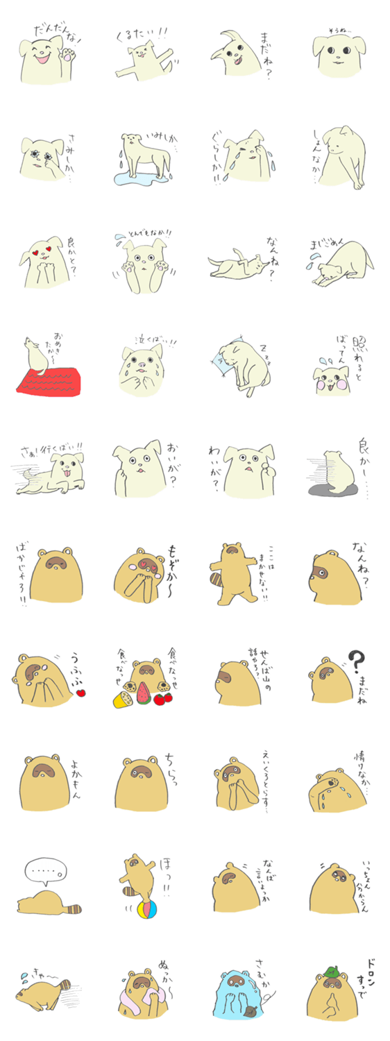 犬のワンタと狸のポンタの九州弁 ひとよし くまこ コメントをどうぞ 主に熊本弁・球磨弁をしゃべります。長崎弁・福岡弁・大分弁・佐賀弁・鹿児島弁等、九州の方言が混ざっています。『だんだんな』は人吉球磨地方で『ありがとう』です。 このスタンプどう思う?!↓クリックで投票♪好き (0)かわいい (0)かっこいい (0)おもしろい (0)使いやすそう (0)欲しい (0)萌え (0)ほっこりする (0)おしゃれ (0)ゆるい (0)こわい (0)ウザい (0)キモい (0)ムカつく (0)持ってる (0)癒される (0)セクシー (0)個性的 (0)私は買わない (0)誰かプレゼントして! (0) 購入・プレゼントする Facebookでシェア Twitterでシェア