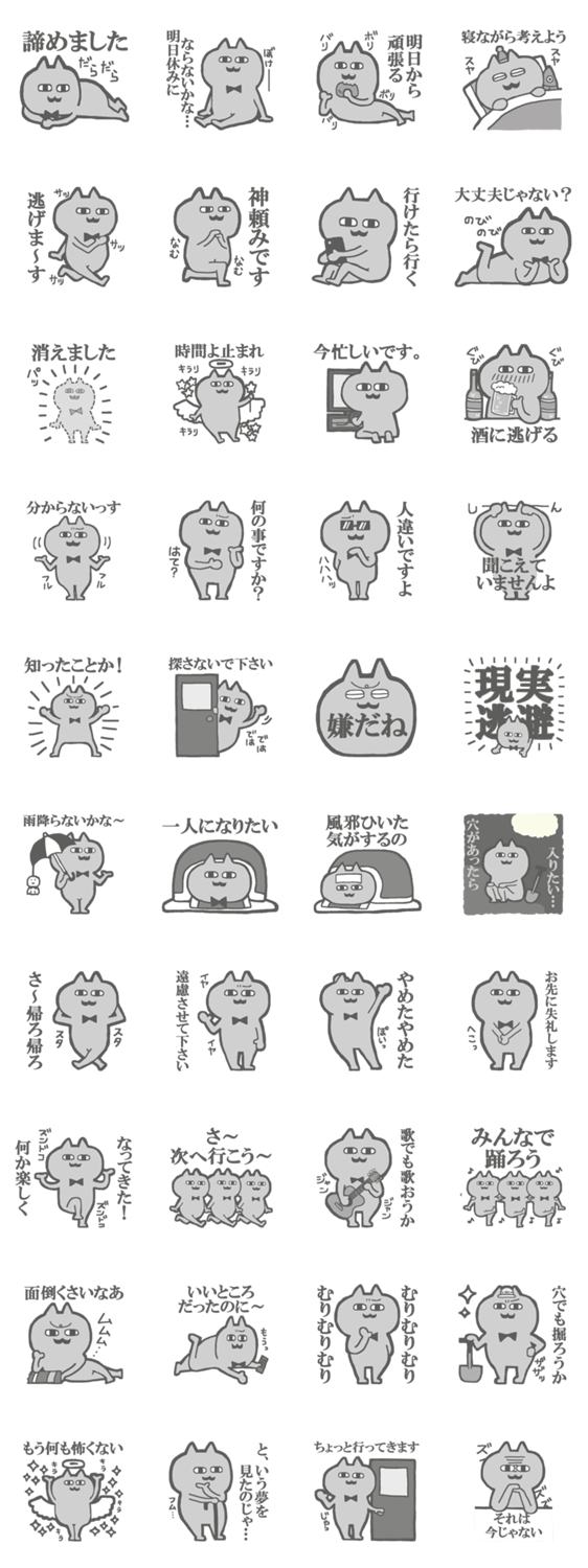 現実逃避のダメ猫スタンプ CATHMO Inc. コメントをどうぞ 常にネガティブで現実逃避気味なダメ猫スタンプで、やる気の無い気持ちを伝えよう。 このスタンプどう思う?!↓クリックで投票♪好き (0)かわいい (0)かっこいい (0)おもしろい (0)使いやすそう (0)欲しい (0)萌え (0)ほっこりする (0)おしゃれ (0)ゆるい (0)こわい (0)ウザい (0)キモい (0)ムカつく (0)持ってる (0)癒される (0)セクシー (0)個性的 (0)私は買わない (0)誰かプレゼントして! (0) 購入・プレゼントする Facebookでシェア Twitterでシェア