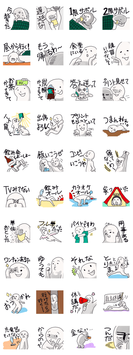 現役大学生に聞いた!使う一言 Roots Interactive コメントをどうぞ 男でも女でもない無機質大学生が、キャンパスライフをうざめに表現します。現役大学生がよく使う一言40選!!大学生に限らず、学生ならば便利なスタンプです。 このスタンプどう思う?!↓クリックで投票♪好き (0)かわいい (0)かっこいい (0)おもしろい (0)使いやすそう (0)欲しい (0)萌え (0)ほっこりする (0)おしゃれ (0)ゆるい (0)こわい (0)ウザい (0)キモい (0)ムカつく (0)持ってる (0)癒される (0)セクシー (0)個性的 (0)私は買わない (0)誰かプレゼントして! (0) 購入・プレゼントする Facebookでシェア Twitterでシェア