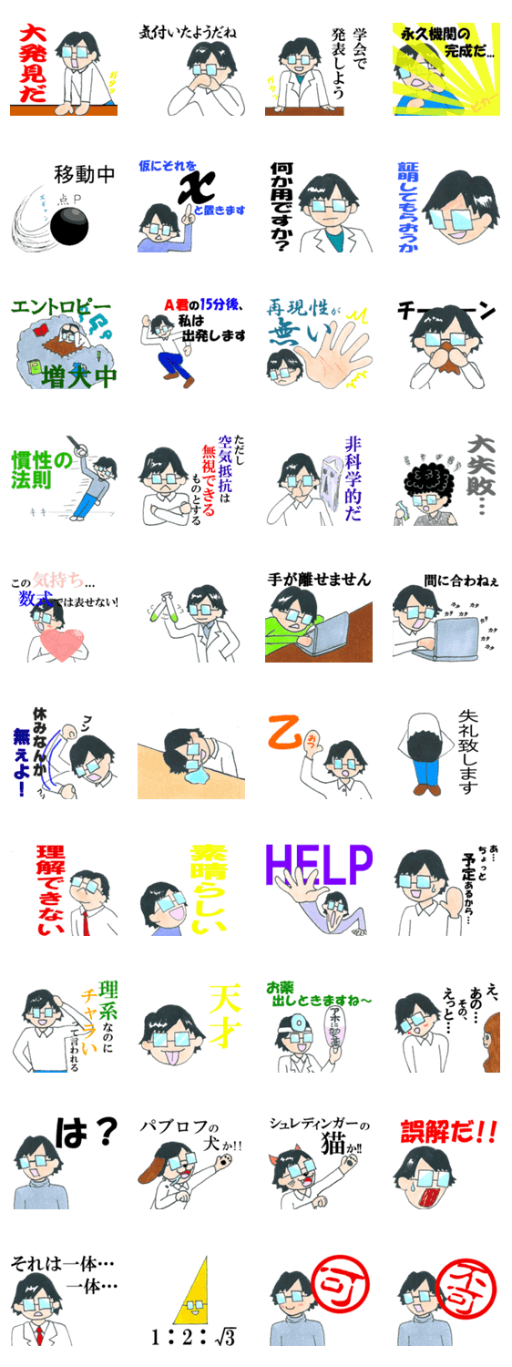 理系男子!リケ男くん KURIRIN コメントをどうぞ 物理やら生物やら化学やら科学やら完全理系のリケ男くん。メガネと白衣がトレードマーク。女子大生は周りにいっぱいなのに女子耐性はまだない。 このスタンプどう思う?!↓クリックで投票♪好き (0)かわいい (0)かっこいい (0)おもしろい (0)使いやすそう (0)欲しい (0)萌え (0)ほっこりする (0)おしゃれ (0)ゆるい (0)こわい (0)ウザい (0)キモい (0)ムカつく (0)持ってる (0)癒される (0)セクシー (0)個性的 (0)私は買わない (0)誰かプレゼントして! (0) 購入・プレゼントする Facebookでシェア Twitterでシェア