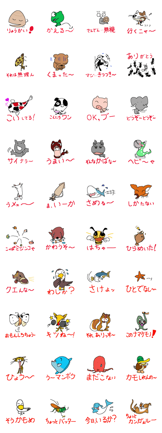 生きものたちのダジャレ会話 Medaka コメントをどうぞ 生きものたちの名前と日常会話をダジャレにしてみました。表情、行動にご注目ください。 このスタンプどう思う?!↓クリックで投票♪好き (0)かわいい (0)かっこいい (0)おもしろい (0)使いやすそう (0)欲しい (0)萌え (0)ほっこりする (0)おしゃれ (0)ゆるい (0)こわい (0)ウザい (0)キモい (0)ムカつく (0)持ってる (0)癒される (0)セクシー (0)個性的 (0)私は買わない (0)誰かプレゼントして! (0) 購入・プレゼントする Facebookでシェア Twitterでシェア