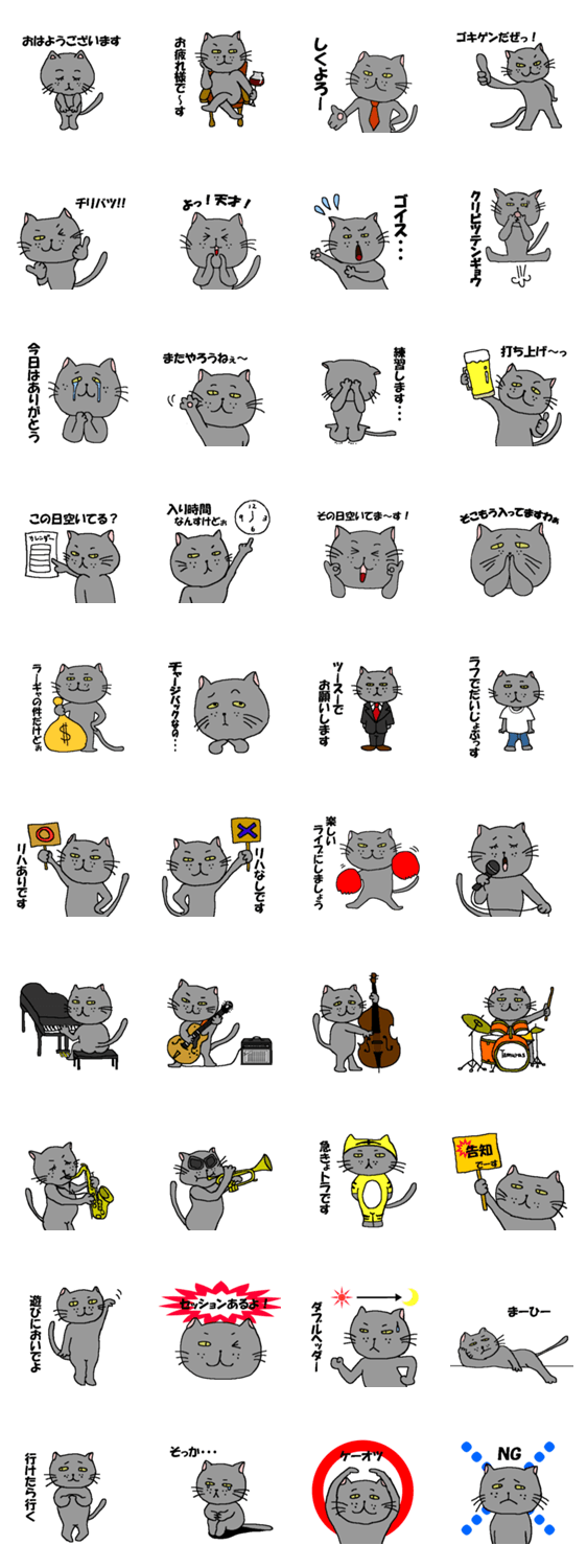 田村さんちのミュージシャン あすか工房 コメントをどうぞ 田村さんちのネコ第2弾は、ミュージシャンのリアルな業務連絡バージョン。ドンバ用語や楽器など、使える場面が盛りだくさん。 このスタンプどう思う?!↓クリックで投票♪好き (0)かわいい (0)かっこいい (0)おもしろい (0)使いやすそう (0)欲しい (0)萌え (0)ほっこりする (0)おしゃれ (0)ゆるい (0)こわい (0)ウザい (0)キモい (0)ムカつく (0)持ってる (0)癒される (0)セクシー (0)個性的 (0)私は買わない (0)誰かプレゼントして! (0) 購入・プレゼントする Facebookでシェア Twitterでシェア
