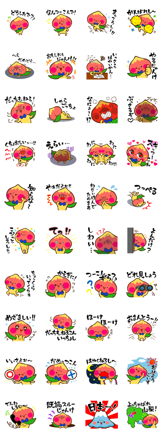 甲州弁in山梨県 黒田きんぎょ コメントをどうぞ てっ!山梨県の方言、甲州弁のスタンプが登場っつーこん!山梨県民もそうじゃないおまんとうも、ぜひ甲州弁をマスターしてくりょうし~! このスタンプどう思う?!↓クリックで投票♪好き (0)かわいい (0)かっこいい (0)おもしろい (0)使いやすそう (0)欲しい (0)萌え (0)ほっこりする (0)おしゃれ (0)ゆるい (0)こわい (0)ウザい (0)キモい (0)ムカつく (0)持ってる (0)癒される (0)セクシー (0)個性的 (0)私は買わない (0)誰かプレゼントして! (0) 購入・プレゼントする Facebookでシェア Twitterでシェア
