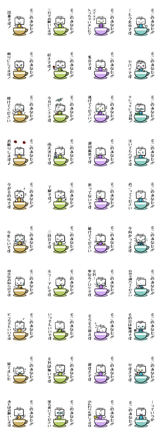 画面の前のあなたに届け KURARI コメントをどうぞ 砂糖の妖精「佐藤かくざとっちぃ」さんが、ディスプレイの向こう側の大切な相手にツッコミ・励まし・毒舌その他をユルく甘ーく届けてくれるスタンプ。 このスタンプどう思う?!↓クリックで投票♪好き (0)かわいい (0)かっこいい (0)おもしろい (0)使いやすそう (0)欲しい (0)萌え (0)ほっこりする (0)おしゃれ (0)ゆるい (0)こわい (0)ウザい (0)キモい (0)ムカつく (0)持ってる (0)癒される (0)セクシー (0)個性的 (0)私は買わない (0)誰かプレゼントして! (0) 購入・プレゼントする Facebookでシェア Twitterでシェア