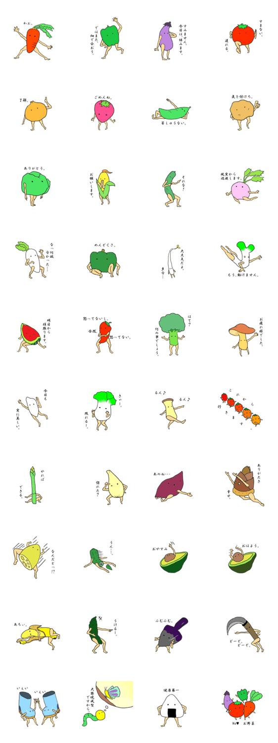 畑のゆかいな仲間たち 白山さんと長山さん コメントをどうぞ 美脚な野菜たちの感情豊かなスタンプです。このスタンプを使うと、野菜を好きになれるかも!?野菜たちと自然豊かな生活を過ごしませんか? このスタンプどう思う?!↓クリックで投票♪好き (0)かわいい (0)かっこいい (0)おもしろい (0)使いやすそう (0)欲しい (0)萌え (0)ほっこりする (0)おしゃれ (0)ゆるい (0)こわい (0)ウザい (0)キモい (0)ムカつく (0)持ってる (0)癒される (0)セクシー (0)個性的 (0)私は買わない (0)誰かプレゼントして! (0) 購入・プレゼントする Facebookでシェア Twitterでシェア