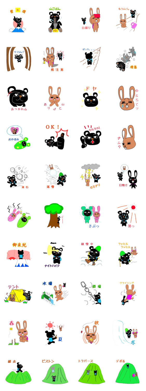 登郎と降姫のゆるゆる登山。 satomi コメントをどうぞ 登郎(ノボロウ)と降姫(オリヒメ)が繰り出す登山スタンプです。様々なシチュエーションに四季折々のスタンプを是非。登山初心者からエキスパートまで対応! このスタンプどう思う?!↓クリックで投票♪好き (0)かわいい (0)かっこいい (0)おもしろい (0)使いやすそう (0)欲しい (0)萌え (0)ほっこりする (0)おしゃれ (0)ゆるい (0)こわい (0)ウザい (0)キモい (0)ムカつく (0)持ってる (0)癒される (0)セクシー (0)個性的 (0)私は買わない (0)誰かプレゼントして! (0) 購入・プレゼントする Facebookでシェア Twitterでシェア
