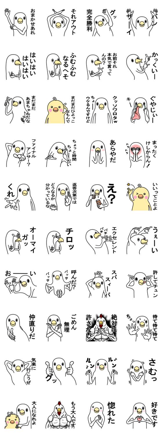 白いトリたちです。 mame コメントをどうぞ 軽くうざい白いとりとその仲間たちのスタンプです。 このスタンプどう思う?!↓クリックで投票♪好き (0)かわいい (0)かっこいい (0)おもしろい (0)使いやすそう (0)欲しい (0)萌え (0)ほっこりする (0)おしゃれ (0)ゆるい (0)こわい (0)ウザい (0)キモい (0)ムカつく (0)持ってる (0)癒される (0)セクシー (0)個性的 (0)私は買わない (0)誰かプレゼントして! (0) 購入・プレゼントする Facebookでシェア Twitterでシェア