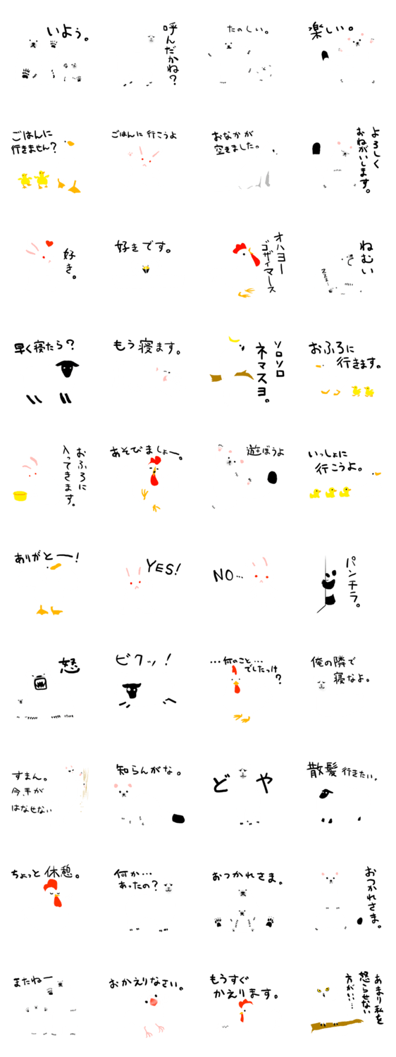 白い動物スタンプ 中野将樹 コメントをどうぞ 一見すると「あれ?文字しかないのかな?」と思ってしまうけど、実際に使ってみると、動物たちがいるんです。 あ、背景が着せ替えで白くなってる人には見えないかも。 このスタンプどう思う?!↓クリックで投票♪好き (0)かわいい (0)かっこいい (0)おもしろい (0)使いやすそう (0)欲しい (0)萌え (0)ほっこりする (0)おしゃれ (0)ゆるい (0)こわい (0)ウザい (0)キモい (0)ムカつく (0)持ってる (0)癒される (0)セクシー (0)個性的 (0)私は買わない (0)誰かプレゼントして! (0) 購入・プレゼントする Facebookでシェア Twitterでシェア
