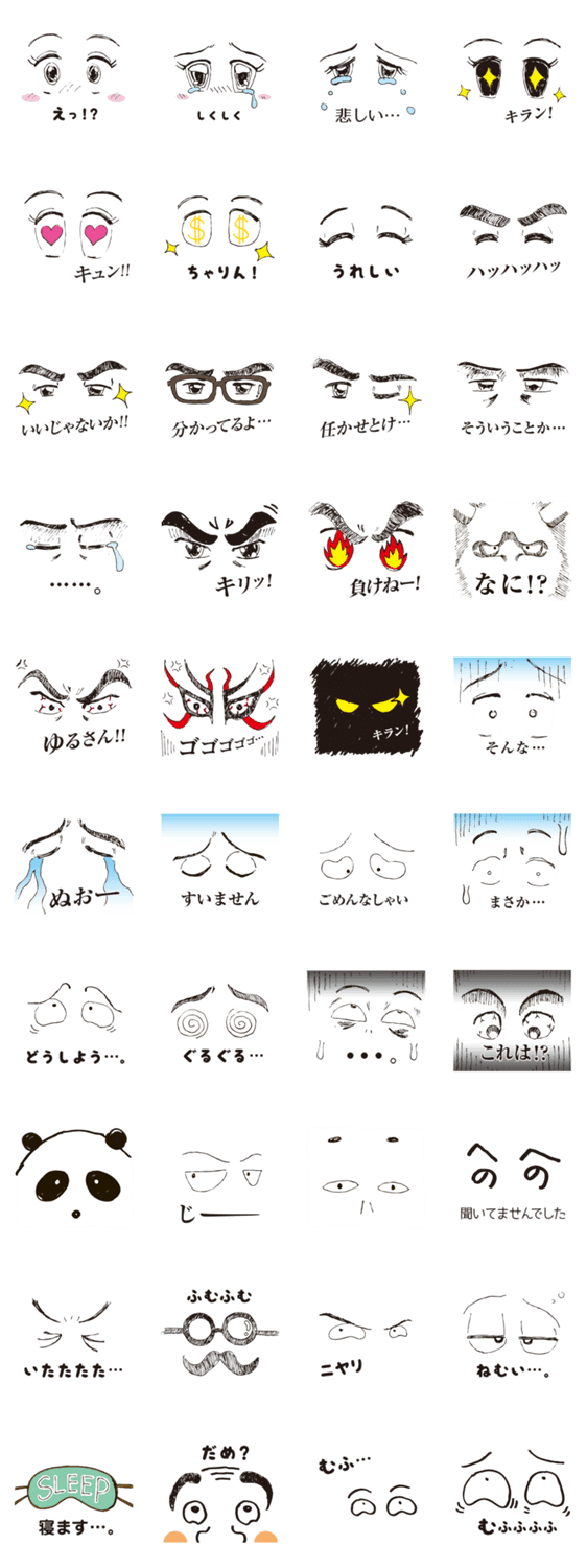目が語りかけます。 たかぽん コメントをどうぞ 目は口ほどにものを言うと言いますが、目の表情であなたの今の気持ちをオモシロ、おかしく伝えましょう。 このスタンプどう思う?!↓クリックで投票♪好き (0)かわいい (0)かっこいい (0)おもしろい (0)使いやすそう (0)欲しい (0)萌え (0)ほっこりする (0)おしゃれ (0)ゆるい (0)こわい (0)ウザい (0)キモい (0)ムカつく (0)持ってる (0)癒される (0)セクシー (0)個性的 (0)私は買わない (0)誰かプレゼントして! (0) 購入・プレゼントする Facebookでシェア Twitterでシェア
