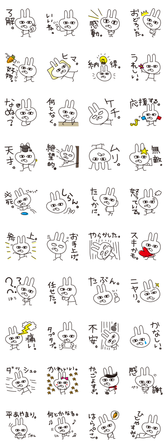 目ヂカラうさ。 キキ コメントをどうぞ まつげが長くてかわいいけど、目力のあるうさぎさん。無表情でシャイ、とっても恥ずかしがり屋さんなんです。 このスタンプどう思う?!↓クリックで投票♪好き (0)かわいい (0)かっこいい (0)おもしろい (0)使いやすそう (0)欲しい (0)萌え (0)ほっこりする (0)おしゃれ (0)ゆるい (0)こわい (0)ウザい (0)キモい (0)ムカつく (0)持ってる (0)癒される (0)セクシー (0)個性的 (0)私は買わない (0)誰かプレゼントして! (0) 購入・プレゼントする Facebookでシェア Twitterでシェア