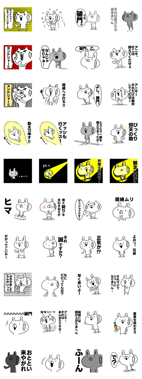 真っ直ぐなウサギとネコ ノンノノン コメントをどうぞ ウサ義に生きるウサギとニャン侠に生きるネコのほんわかスタンプです。うざいけど、どこかかわいく憎めない、二匹をよろしく!決して破門にはされないように。 このスタンプどう思う?!↓クリックで投票♪好き (0)かわいい (0)かっこいい (0)おもしろい (0)使いやすそう (0)欲しい (0)萌え (0)ほっこりする (0)おしゃれ (0)ゆるい (0)こわい (0)ウザい (0)キモい (0)ムカつく (0)持ってる (0)癒される (0)セクシー (0)個性的 (0)私は買わない (0)誰かプレゼントして! (0) 購入・プレゼントする Facebookでシェア Twitterでシェア