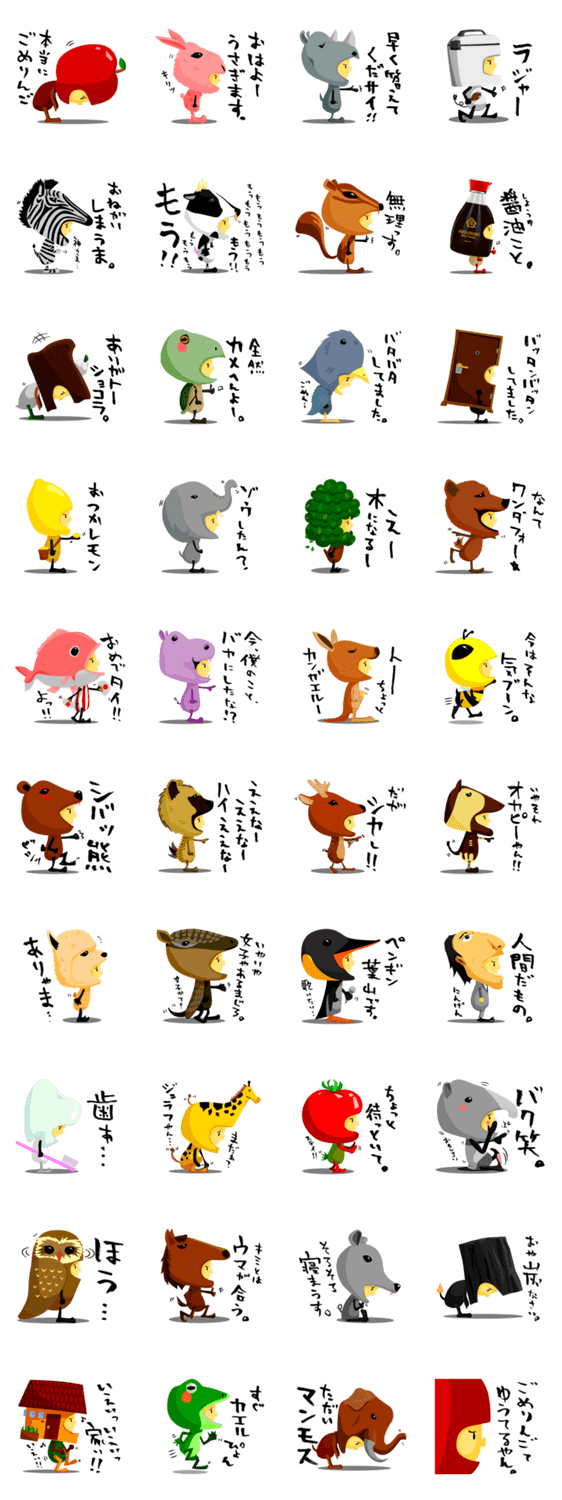 着ぐるみのバイト・改 CHIKARA.U コメントをどうぞ ご要望の多かったダジャレ着ぐるみスタンプの右向きバージョン。新たな着ぐるみも追加し、使い勝手もぐんと良くなった改正版です! このスタンプどう思う?!↓クリックで投票♪好き (0)かわいい (0)かっこいい (0)おもしろい (0)使いやすそう (0)欲しい (0)萌え (0)ほっこりする (0)おしゃれ (0)ゆるい (0)こわい (0)ウザい (0)キモい (0)ムカつく (0)持ってる (0)癒される (0)セクシー (0)個性的 (0)私は買わない (0)誰かプレゼントして! (0) 購入・プレゼントする Facebookでシェア Twitterでシェア