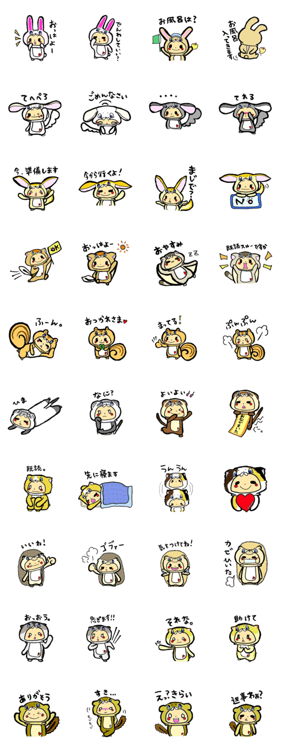 着ぐるみBOY torotoro コメントをどうぞ 可愛い小動物の着ぐるみを着た男の子のスタンプです。エキゾチックな動物も着ぐるみになっちゃいました。 このスタンプどう思う?!↓クリックで投票♪好き (0)かわいい (0)かっこいい (0)おもしろい (0)使いやすそう (0)欲しい (0)萌え (0)ほっこりする (0)おしゃれ (0)ゆるい (0)こわい (0)ウザい (0)キモい (0)ムカつく (0)持ってる (0)癒される (0)セクシー (0)個性的 (0)私は買わない (0)誰かプレゼントして! (0) 購入・プレゼントする Facebookでシェア Twitterでシェア
