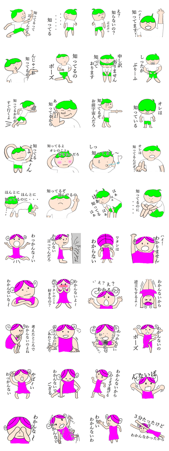 知ってるミドリくんとわからないモモちゃん ぐっち コメントをどうぞ なんでも知っているミドリくんと、なんにもわからないモモちゃんのスタンプです。※二人とも性格は少し歪んでいます。 このスタンプどう思う?!↓クリックで投票♪好き (0)かわいい (0)かっこいい (0)おもしろい (0)使いやすそう (0)欲しい (0)萌え (0)ほっこりする (0)おしゃれ (0)ゆるい (0)こわい (0)ウザい (0)キモい (0)ムカつく (0)持ってる (0)癒される (0)セクシー (0)個性的 (0)私は買わない (0)誰かプレゼントして! (0) 購入・プレゼントする Facebookでシェア Twitterでシェア