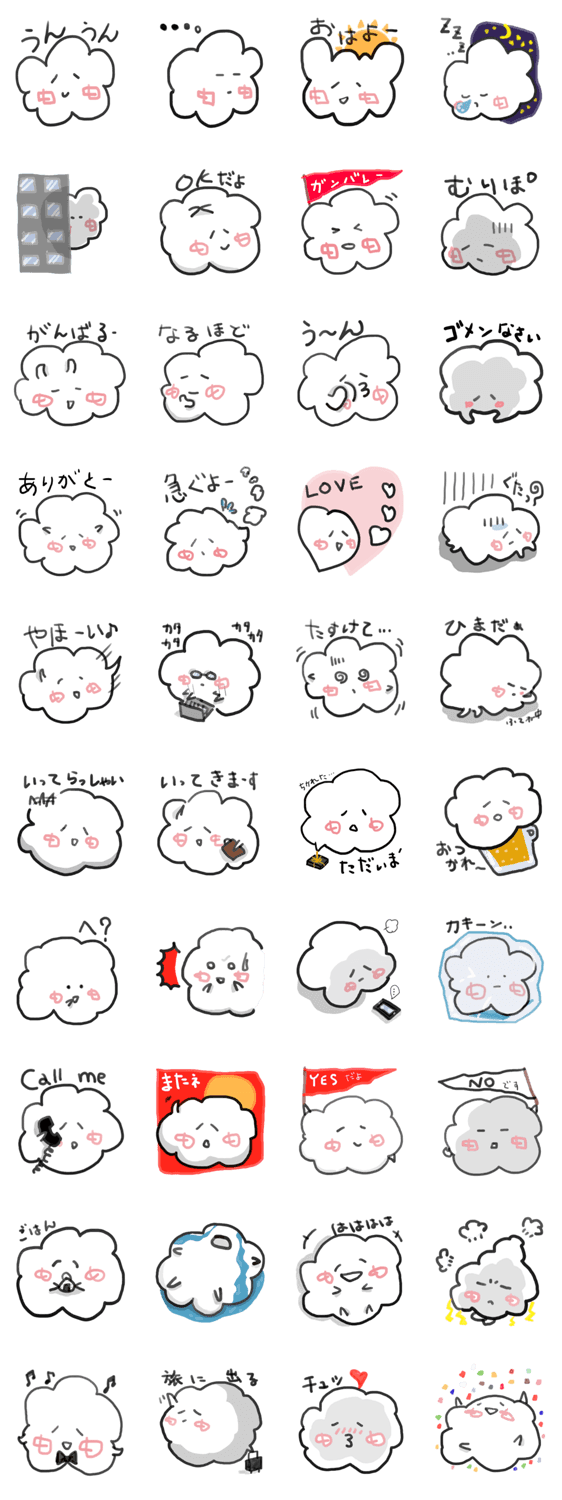 積雲の「せきちゃん」 Abe Mitsu コメントをどうぞ 綿菓子みたいな積雲「せきちゃん」の日常会話スタンプです。だいたいにおいておっとりしています。 このスタンプどう思う?!↓クリックで投票♪好き (0)かわいい (0)かっこいい (0)おもしろい (0)使いやすそう (0)欲しい (0)萌え (0)ほっこりする (0)おしゃれ (0)ゆるい (0)こわい (0)ウザい (0)キモい (0)ムカつく (0)持ってる (0)癒される (0)セクシー (0)個性的 (0)私は買わない (0)誰かプレゼントして! (0) 購入・プレゼントする Facebookでシェア Twitterでシェア