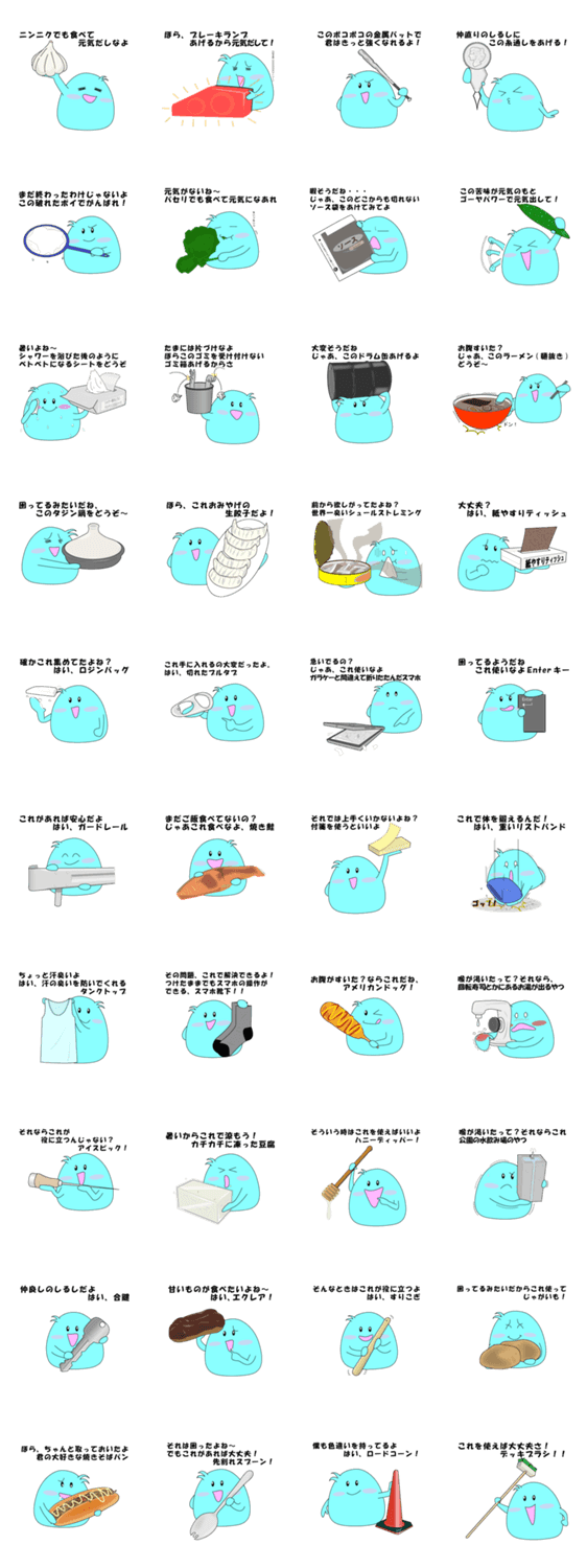 穴谷さん ゆたぽ コメントをどうぞ 何でも出せる穴谷さんのスタンプです。困っている人に必要としているものを提供します。変なものを出して、相手にツッコんでもらおう。 このスタンプどう思う?!↓クリックで投票♪好き (0)かわいい (0)かっこいい (0)おもしろい (0)使いやすそう (0)欲しい (0)萌え (0)ほっこりする (0)おしゃれ (0)ゆるい (0)こわい (0)ウザい (0)キモい (0)ムカつく (0)持ってる (0)癒される (0)セクシー (0)個性的 (0)私は買わない (0)誰かプレゼントして! (0) 購入・プレゼントする Facebookでシェア Twitterでシェア