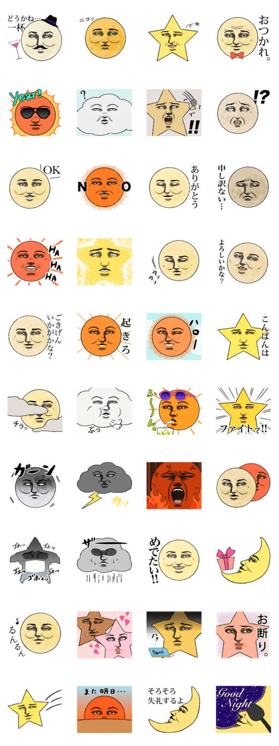 空模様はダンディ Asami コメントをどうぞ ダンディーな月、ちょっと憎たらしい太陽など、表情豊かな空の住人たちの日常系スタンプ。 このスタンプどう思う?!↓クリックで投票♪好き (0)かわいい (0)かっこいい (0)おもしろい (0)使いやすそう (0)欲しい (0)萌え (0)ほっこりする (0)おしゃれ (0)ゆるい (0)こわい (0)ウザい (0)キモい (0)ムカつく (0)持ってる (0)癒される (0)セクシー (0)個性的 (0)私は買わない (0)誰かプレゼントして! (0) 購入・プレゼントする Facebookでシェア Twitterでシェア