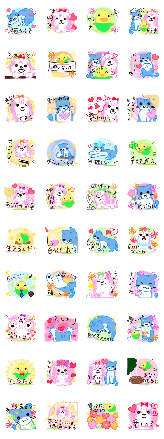 空色のソラと桜色のラブ eimy コメントをどうぞ 「空色のソラ」2nd。シーズー犬のラブが登場!猫、犬、鳥、動物好きの皆様に贈る、希望の励ましスタンプです。励ましは、万の力。「たんぽぽ色のピースケ」もいるよ。 このスタンプどう思う?!↓クリックで投票♪好き (0)かわいい (0)かっこいい (0)おもしろい (0)使いやすそう (0)欲しい (0)萌え (0)ほっこりする (0)おしゃれ (0)ゆるい (0)こわい (0)ウザい (0)キモい (0)ムカつく (0)持ってる (0)癒される (0)セクシー (0)個性的 (0)私は買わない (0)誰かプレゼントして! (0) 購入・プレゼントする Facebookでシェア Twitterでシェア