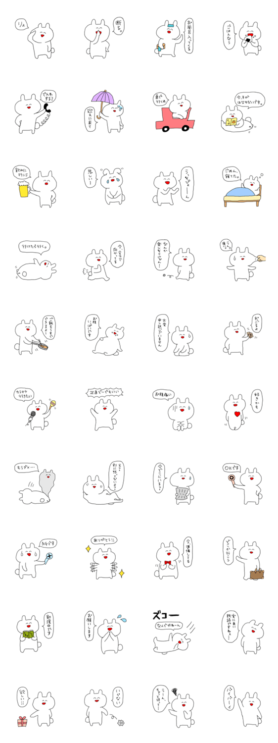 笑うウサ吉の日常 おもち コメントをどうぞ 常に笑顔を絶やさない、笑うウサギ「ウサ吉」の日常スタンプです。ゆるい気分になりたい時、文字を打つのが面倒な時などに使ってやってください。 このスタンプどう思う?!↓クリックで投票♪好き (0)かわいい (0)かっこいい (0)おもしろい (0)使いやすそう (0)欲しい (0)萌え (0)ほっこりする (0)おしゃれ (0)ゆるい (0)こわい (0)ウザい (0)キモい (0)ムカつく (0)持ってる (0)癒される (0)セクシー (0)個性的 (0)私は買わない (0)誰かプレゼントして! (0) 購入・プレゼントする Facebookでシェア Twitterでシェア