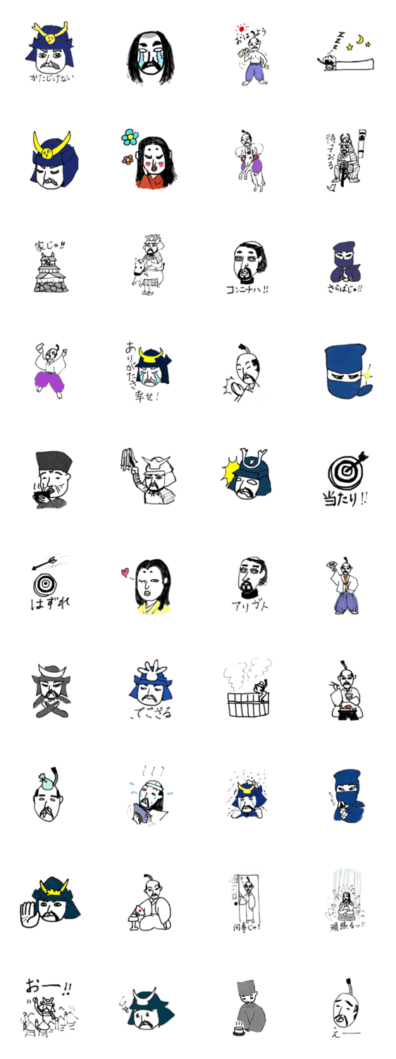 筆武将 OHA-PU コメントをどうぞ 筆で描かれた武士、殿様、忍者達が、あなたの気持ちを伝えます! このスタンプどう思う?!↓クリックで投票♪好き (0)かわいい (0)かっこいい (0)おもしろい (0)使いやすそう (0)欲しい (0)萌え (0)ほっこりする (0)おしゃれ (0)ゆるい (0)こわい (0)ウザい (0)キモい (0)ムカつく (0)持ってる (0)癒される (0)セクシー (0)個性的 (0)私は買わない (0)誰かプレゼントして! (0) 購入・プレゼントする Facebookでシェア Twitterでシェア