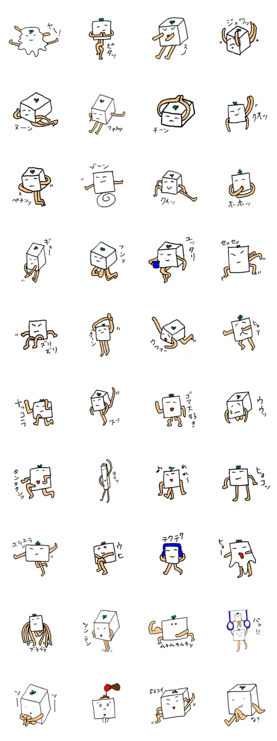 筋トレトーフちゃん HIGASHIATAMA コメントをどうぞ 毎日のラインのお供に♪yogaや筋トレをするトーフちゃんです。 このスタンプどう思う?!↓クリックで投票♪好き (0)かわいい (0)かっこいい (0)おもしろい (0)使いやすそう (0)欲しい (0)萌え (0)ほっこりする (0)おしゃれ (0)ゆるい (0)こわい (0)ウザい (0)キモい (0)ムカつく (0)持ってる (0)癒される (0)セクシー (0)個性的 (0)私は買わない (0)誰かプレゼントして! (0) 購入・プレゼントする Facebookでシェア Twitterでシェア