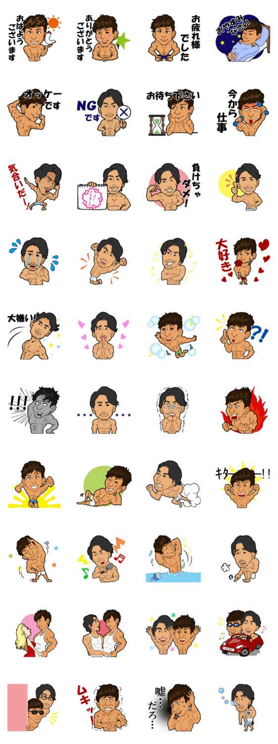 筋肉ブラザーズ パーソナルトレーニングスタジオREAL コメントをどうぞ トレーニングを仕事としているマッチョな僕らが、日常使いもできるスタンプを考案しました。ぜひ皆さんご利用下さい!! このスタンプどう思う?!↓クリックで投票♪好き (0)かわいい (0)かっこいい (0)おもしろい (0)使いやすそう (0)欲しい (0)萌え (0)ほっこりする (0)おしゃれ (0)ゆるい (0)こわい (0)ウザい (0)キモい (0)ムカつく (0)持ってる (0)癒される (0)セクシー (0)個性的 (0)私は買わない (0)誰かプレゼントして! (0) 購入・プレゼントする Facebookでシェア Twitterでシェア