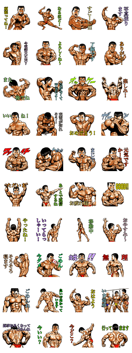 筋肉マッチョマッスルスタンプ こばやし まさお コメントをどうぞ ボディビルのポージングを使った、日常会話で使える 筋肉好きの為の、筋肉マッチョマッスルスタンプです。 このスタンプどう思う?!↓クリックで投票♪好き (0)かわいい (0)かっこいい (0)おもしろい (0)使いやすそう (0)欲しい (0)萌え (0)ほっこりする (0)おしゃれ (0)ゆるい (0)こわい (0)ウザい (0)キモい (0)ムカつく (0)持ってる (0)癒される (0)セクシー (0)個性的 (0)私は買わない (0)誰かプレゼントして! (0) 購入・プレゼントする Facebookでシェア Twitterでシェア