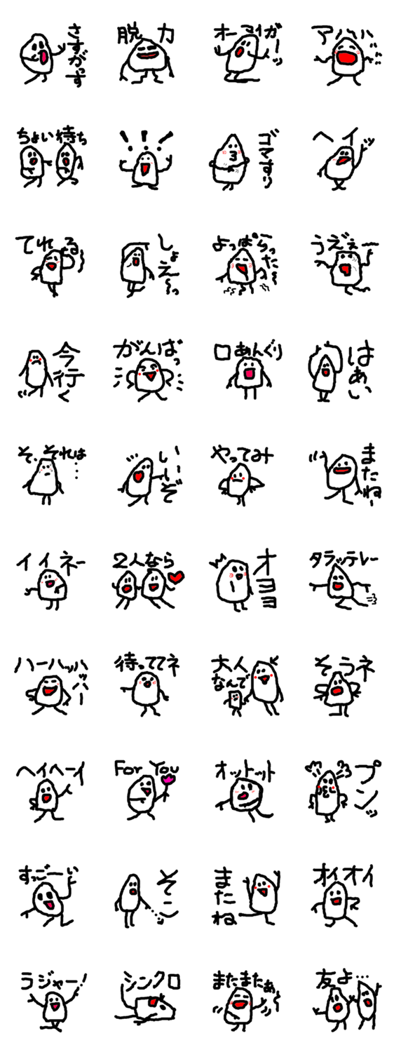 米丸の日常 ユウ コメントをどうぞ 下手可愛いくて軽くウザい、脱力系の魅力たっぷりなゆるい米。愛嬌たっぷりの手書き米を使って人気者になりましょう。日常会話で使えるコメ語を集めました。 このスタンプどう思う?!↓クリックで投票♪好き (0)かわいい (0)かっこいい (0)おもしろい (0)使いやすそう (0)欲しい (0)萌え (0)ほっこりする (0)おしゃれ (0)ゆるい (0)こわい (0)ウザい (0)キモい (0)ムカつく (0)持ってる (0)癒される (0)セクシー (0)個性的 (0)私は買わない (0)誰かプレゼントして! (0) 購入・プレゼントする Facebookでシェア Twitterでシェア