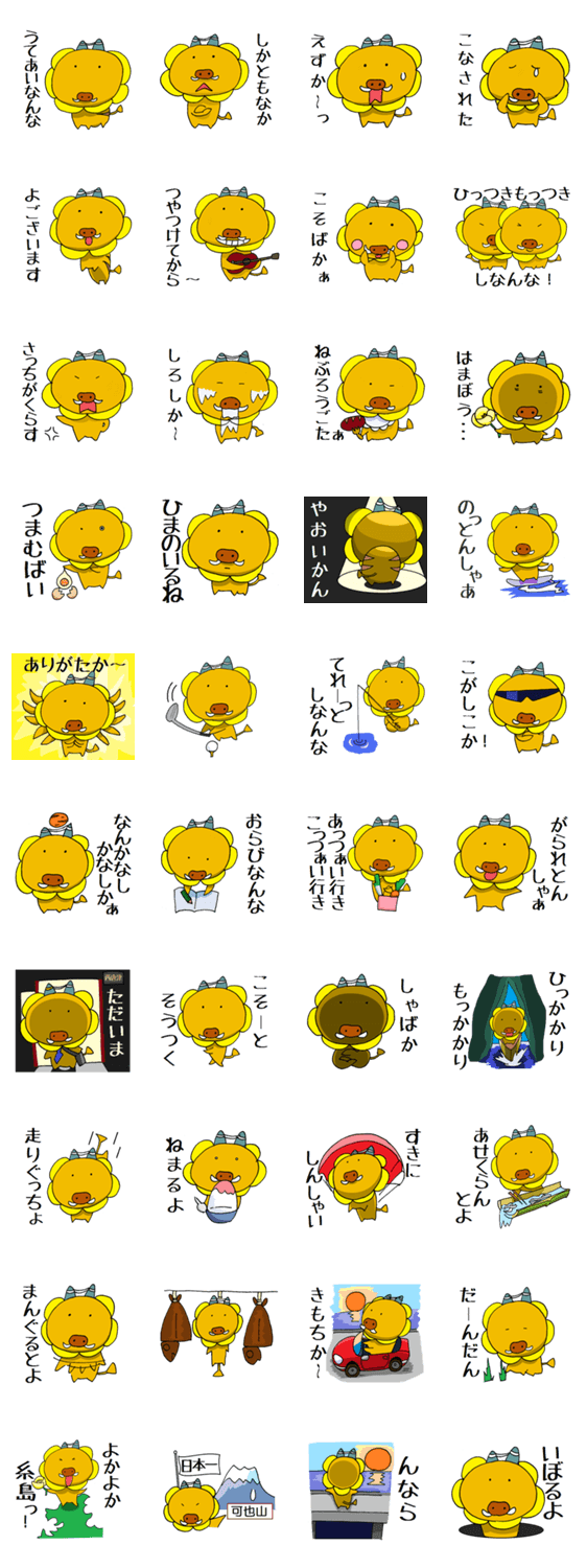 糸島のハマウリボウ NOUTOMIHIDEAKI コメントをどうぞ 福岡県の西部、糸島半島をこよなく愛する、ハマボウという花といのししの子供うりぼうの妖精「ハマウリボウ」のスタンプです。糸島弁丸出しですが、よござっしょ。 このスタンプどう思う?!↓クリックで投票♪好き (0)かわいい (0)かっこいい (0)おもしろい (0)使いやすそう (0)欲しい (0)萌え (0)ほっこりする (0)おしゃれ (0)ゆるい (0)こわい (0)ウザい (0)キモい (0)ムカつく (0)持ってる (0)癒される (0)セクシー (0)個性的 (0)私は買わない (0)誰かプレゼントして! (0) 購入・プレゼントする Facebookでシェア Twitterでシェア