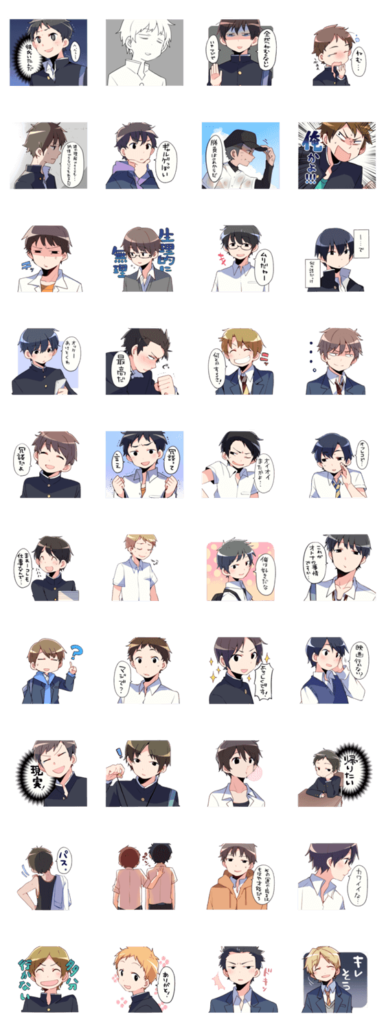 結局のところ学生っていいよね tanedakun コメントをどうぞ お久しぶりです。学ラン&ブレザースタンプ第三弾です。 このスタンプどう思う?!↓クリックで投票♪好き (0)かわいい (0)かっこいい (0)おもしろい (0)使いやすそう (0)欲しい (0)萌え (0)ほっこりする (0)おしゃれ (0)ゆるい (0)こわい (0)ウザい (0)キモい (0)ムカつく (0)持ってる (0)癒される (0)セクシー (0)個性的 (0)私は買わない (0)誰かプレゼントして! (0) 購入・プレゼントする Facebookでシェア Twitterでシェア