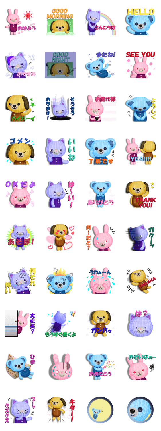 編みぐるみのスタンプ さとち コメントをどうぞ 青くま・桃うさぎ・黄いぬ・紫ねこのかわいい編みぐるみスタンプです。よく使う言葉を多めにしたので使いやすいと思います。よろしくお願いします。 このスタンプどう思う?!↓クリックで投票♪好き (0)かわいい (0)かっこいい (0)おもしろい (0)使いやすそう (0)欲しい (0)萌え (0)ほっこりする (0)おしゃれ (0)ゆるい (0)こわい (0)ウザい (0)キモい (0)ムカつく (0)持ってる (0)癒される (0)セクシー (0)個性的 (0)私は買わない (0)誰かプレゼントして! (0) 購入・プレゼントする Facebookでシェア Twitterでシェア