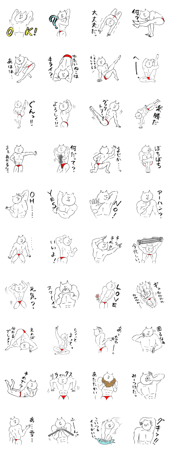 肉体派のねこ CAM YUMOTO コメントをどうぞ 肉体派のねこはいつも真剣勝負です。 このスタンプどう思う?!↓クリックで投票♪好き (0)かわいい (0)かっこいい (0)おもしろい (0)使いやすそう (0)欲しい (0)萌え (0)ほっこりする (0)おしゃれ (0)ゆるい (0)こわい (0)ウザい (0)キモい (0)ムカつく (0)持ってる (0)癒される (0)セクシー (0)個性的 (0)私は買わない (0)誰かプレゼントして! (0) 購入・プレゼントする Facebookでシェア Twitterでシェア