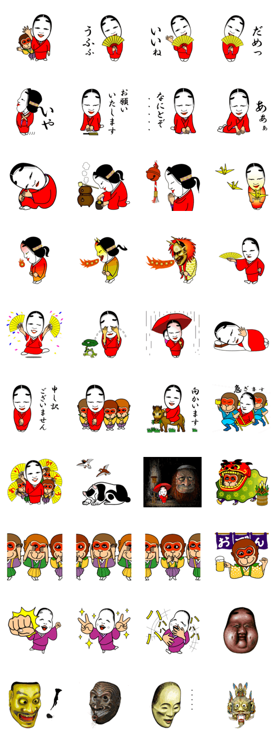 能面ちゃん toshizaemon コメントをどうぞ ~心より心に伝ふる花なれば~ 日本伝統芸能の能面たちが,かわいいキャラクターになって登場! 能面ちゃんと仲間たちの喜怒哀楽ゆたかな情感をどうぞお楽しみください. このスタンプどう思う?!↓クリックで投票♪好き (0)かわいい (0)かっこいい (0)おもしろい (0)使いやすそう (0)欲しい (0)萌え (0)ほっこりする (0)おしゃれ (0)ゆるい (0)こわい (0)ウザい (0)キモい (0)ムカつく (0)持ってる (0)癒される (0)セクシー (0)個性的 (0)私は買わない (0)誰かプレゼントして! (0) 購入・プレゼントする Facebookでシェア Twitterでシェア