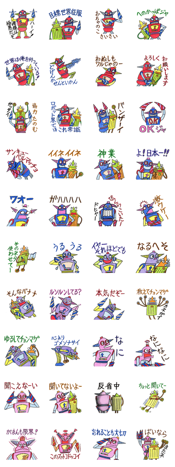 自己中ロボット ロボヤン15号 kuro コメントをどうぞ ロボヤン15号と子分のロボッチです。優しい時もあります。たまに死語や流行語を使います。ゆるかわロボッティ3号のライバルです。太地作(手描き) このスタンプどう思う?!↓クリックで投票♪好き (0)かわいい (0)かっこいい (0)おもしろい (0)使いやすそう (0)欲しい (0)萌え (0)ほっこりする (0)おしゃれ (0)ゆるい (0)こわい (0)ウザい (0)キモい (0)ムカつく (0)持ってる (0)癒される (0)セクシー (0)個性的 (0)私は買わない (0)誰かプレゼントして! (0) 購入・プレゼントする Facebookでシェア Twitterでシェア