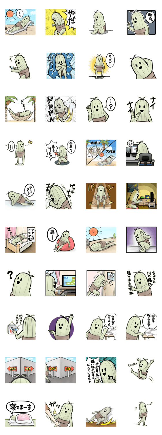 自由すぎるサボテン Exys コメントをどうぞ 元はご家庭でヌクヌクと飼われていた為やる気がない。ある日、植木鉢はそのままに足が生え逃げ出した。やりたい放題である。 このスタンプどう思う?!↓クリックで投票♪好き (0)かわいい (0)かっこいい (0)おもしろい (0)使いやすそう (0)欲しい (0)萌え (0)ほっこりする (0)おしゃれ (0)ゆるい (0)こわい (0)ウザい (0)キモい (0)ムカつく (0)持ってる (0)癒される (0)セクシー (0)個性的 (0)私は買わない (0)誰かプレゼントして! (0) 購入・プレゼントする Facebookでシェア Twitterでシェア