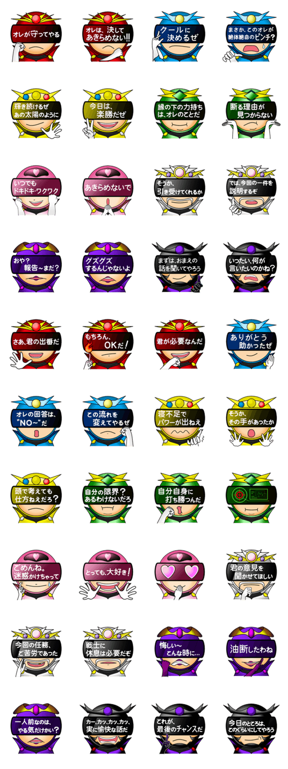 色いろ選士 富士 茶々丸 コメントをどうぞ いろいろな色の戦士たちが君の代わりに、勇気や希望が出るアドバイス、辛口なメッセージを話してくれるよ!果たして、うまく使いこなせるかな? このスタンプどう思う?!↓クリックで投票♪好き (0)かわいい (0)かっこいい (0)おもしろい (0)使いやすそう (0)欲しい (0)萌え (0)ほっこりする (0)おしゃれ (0)ゆるい (0)こわい (0)ウザい (0)キモい (0)ムカつく (0)持ってる (0)癒される (0)セクシー (0)個性的 (0)私は買わない (0)誰かプレゼントして! (0) 購入・プレゼントする Facebookでシェア Twitterでシェア