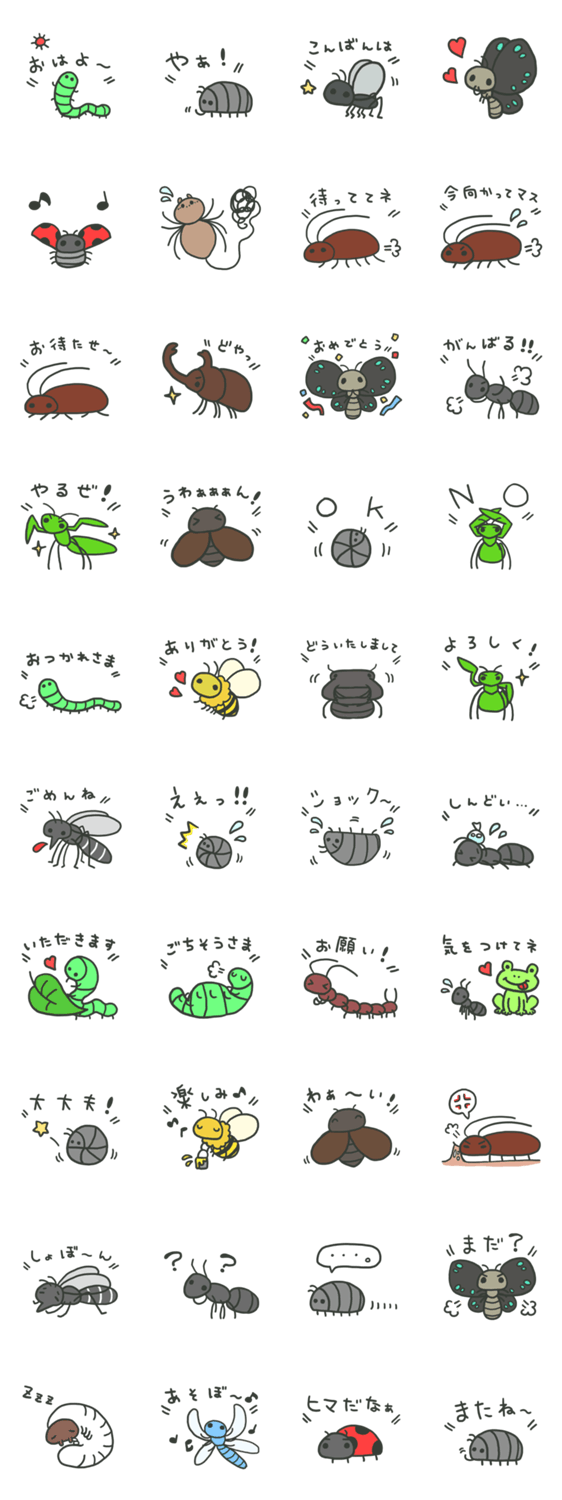 色んな虫たち ma- コメントをどうぞ 色んな虫たちのスタンプです。虫好きの人も、そうでない人も、どうぞ。 このスタンプどう思う?!↓クリックで投票♪好き (0)かわいい (0)かっこいい (0)おもしろい (0)使いやすそう (0)欲しい (0)萌え (0)ほっこりする (0)おしゃれ (0)ゆるい (0)こわい (0)ウザい (0)キモい (0)ムカつく (0)持ってる (0)癒される (0)セクシー (0)個性的 (0)私は買わない (0)誰かプレゼントして! (0) 購入・プレゼントする Facebookでシェア Twitterでシェア
