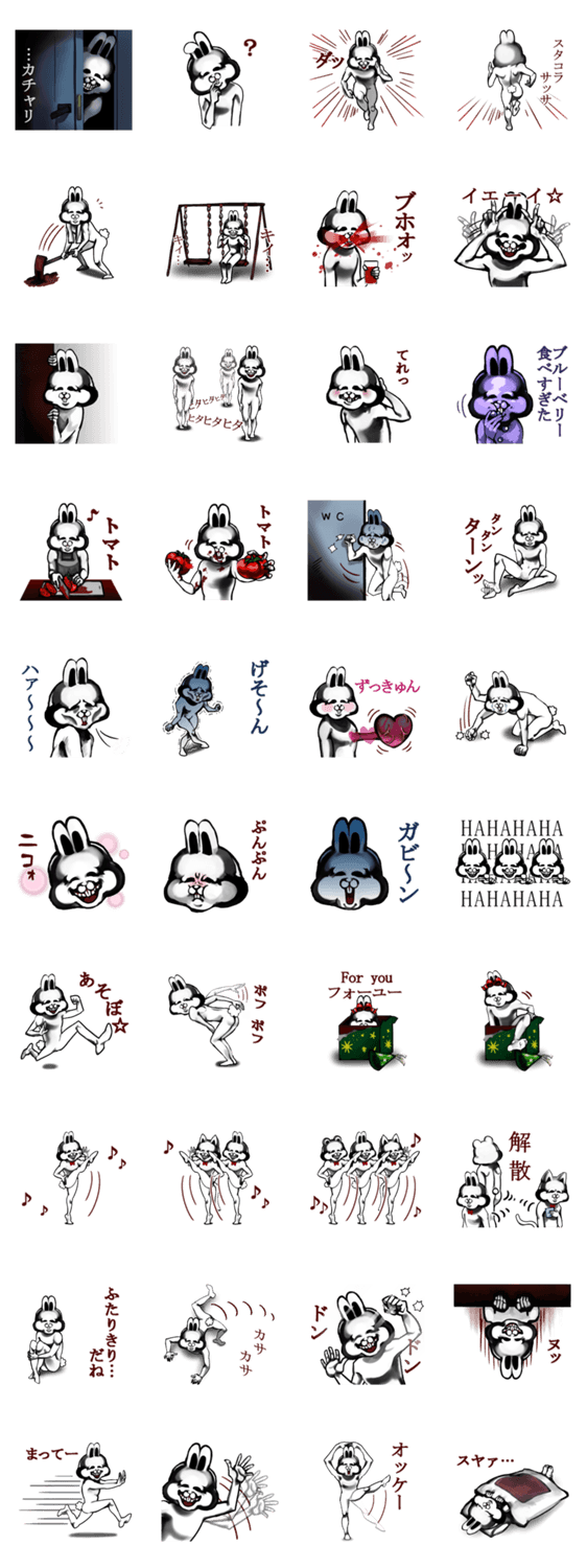 色白のうさぎさん Honeycake コメントをどうぞ 顔が不気味なところ以外はみんなと同じやさしい心をもったお友達です。 少しだけこわいのでホラー系が苦手な人には送らないほうがいいかもしれません。 このスタンプどう思う?!↓クリックで投票♪好き (0)かわいい (0)かっこいい (0)おもしろい (0)使いやすそう (0)欲しい (0)萌え (0)ほっこりする (0)おしゃれ (0)ゆるい (0)こわい (0)ウザい (0)キモい (0)ムカつく (0)持ってる (0)癒される (0)セクシー (0)個性的 (0)私は買わない (0)誰かプレゼントして! (0) 購入・プレゼントする Facebookでシェア Twitterでシェア