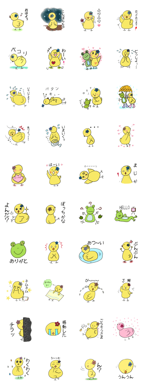 花ぴよ niina コメントをどうぞ かわいいひよこの日常です。なかよしのカエル君もいますよ。シンプルなのでいつでも使えます。 このスタンプどう思う?!↓クリックで投票♪好き (0)かわいい (0)かっこいい (0)おもしろい (0)使いやすそう (0)欲しい (0)萌え (0)ほっこりする (0)おしゃれ (0)ゆるい (0)こわい (0)ウザい (0)キモい (0)ムカつく (0)持ってる (0)癒される (0)セクシー (0)個性的 (0)私は買わない (0)誰かプレゼントして! (0) 購入・プレゼントする Facebookでシェア Twitterでシェア