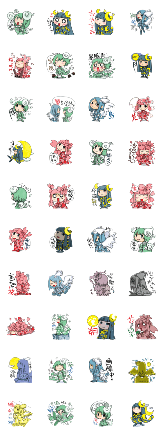 花鳥風月ちゃん。 淵止あひる コメントをどうぞ 花、鳥、風、月をモチーフにした、和風テイストのかわいい4人組のキャラクターですよ。 このスタンプどう思う?!↓クリックで投票♪好き (0)かわいい (0)かっこいい (0)おもしろい (0)使いやすそう (0)欲しい (0)萌え (0)ほっこりする (0)おしゃれ (0)ゆるい (0)こわい (0)ウザい (0)キモい (0)ムカつく (0)持ってる (0)癒される (0)セクシー (0)個性的 (0)私は買わない (0)誰かプレゼントして! (0) 購入・プレゼントする Facebookでシェア Twitterでシェア
