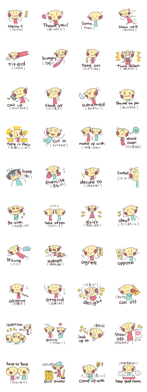 英語できちゃうぜスタンプ ヤヨイ コメントをどうぞ スタンプで英語の勉強もできちゃう!知的に見られちゃう(?) ゆるっと会話しながら英単語のイメージを楽しく覚えちゃいましょ。 このスタンプどう思う?!↓クリックで投票♪好き (0)かわいい (0)かっこいい (0)おもしろい (0)使いやすそう (0)欲しい (0)萌え (0)ほっこりする (0)おしゃれ (0)ゆるい (0)こわい (0)ウザい (0)キモい (0)ムカつく (0)持ってる (0)癒される (0)セクシー (0)個性的 (0)私は買わない (0)誰かプレゼントして! (0) 購入・プレゼントする Facebookでシェア Twitterでシェア