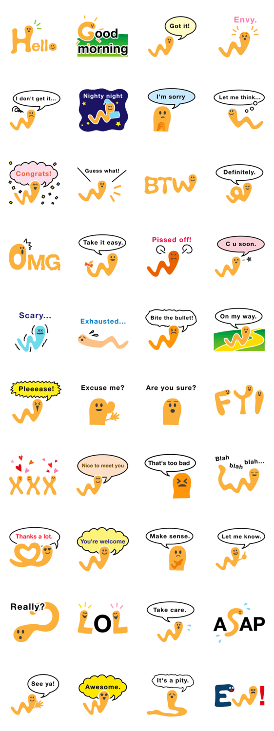 英語勉強虫 mihha コメントをどうぞ Englishwormは英語学習者のためのマスコットキャラクターです。いも虫君が微妙なニュアンスの英語でおしゃべりするよ!LOL,OMG,ASAP,BTWなどの略語も話すよ このスタンプどう思う?!↓クリックで投票♪好き (0)かわいい (0)かっこいい (0)おもしろい (0)使いやすそう (0)欲しい (0)萌え (0)ほっこりする (0)おしゃれ (0)ゆるい (0)こわい (0)ウザい (0)キモい (0)ムカつく (0)持ってる (0)癒される (0)セクシー (0)個性的 (0)私は買わない (0)誰かプレゼントして! (0) 購入・プレゼントする Facebookでシェア Twitterでシェア