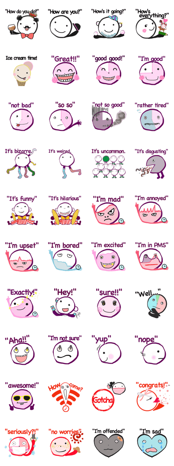 英語好きによる英語好きのためのスタンプ Emily_cnd コメントをどうぞ 英語のフレーズと一緒に気持ちをグラフや色等で相対的に表現したスタンプです。まずは、よく使うフレーズや形容詞から送ってみよう! このスタンプどう思う?!↓クリックで投票♪好き (0)かわいい (0)かっこいい (0)おもしろい (0)使いやすそう (0)欲しい (0)萌え (0)ほっこりする (0)おしゃれ (0)ゆるい (0)こわい (0)ウザい (0)キモい (0)ムカつく (0)持ってる (0)癒される (0)セクシー (0)個性的 (0)私は買わない (0)誰かプレゼントして! (0) 購入・プレゼントする Facebookでシェア Twitterでシェア