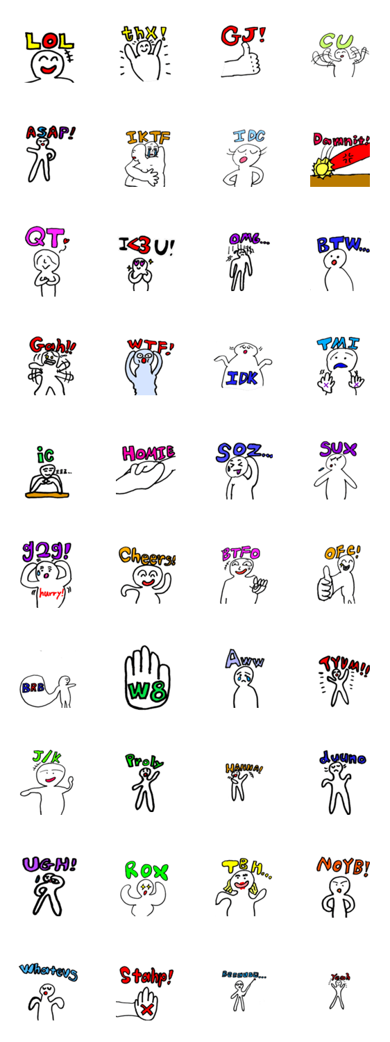 英語deスラング&略語 寒らいおん コメントをどうぞ 君、『W8』これがどういう意味か解るかい?正解は W+eight(8)で『wait』で「待って」という意味になる。面白いだろう?日本語と同じように英語にも略語があるんだぜ! このスタンプどう思う?!↓クリックで投票♪好き (0)かわいい (0)かっこいい (0)おもしろい (0)使いやすそう (0)欲しい (0)萌え (0)ほっこりする (0)おしゃれ (0)ゆるい (0)こわい (0)ウザい (0)キモい (0)ムカつく (0)持ってる (0)癒される (0)セクシー (0)個性的 (0)私は買わない (0)誰かプレゼントして! (0) 購入・プレゼントする Facebookでシェア Twitterでシェア