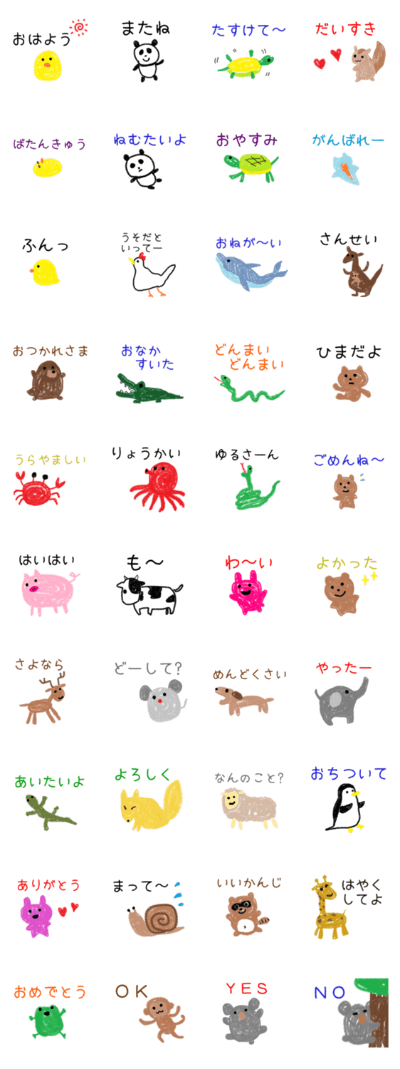 落書き動物スタンプ たらピ コメントをどうぞ クレヨンで描かれた落書きみたいなスタンプです。気の抜けた動物たちがトークをゆるくします。 このスタンプどう思う?!↓クリックで投票♪好き (0)かわいい (0)かっこいい (0)おもしろい (0)使いやすそう (0)欲しい (0)萌え (0)ほっこりする (0)おしゃれ (0)ゆるい (0)こわい (0)ウザい (0)キモい (0)ムカつく (0)持ってる (0)癒される (0)セクシー (0)個性的 (0)私は買わない (0)誰かプレゼントして! (0) 購入・プレゼントする Facebookでシェア Twitterでシェア