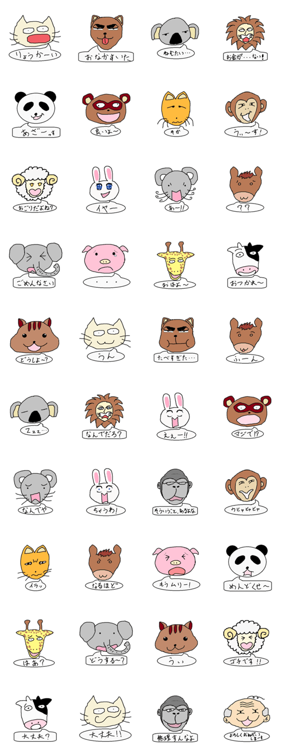 落書き動物園の一言 part2 k-yu_colors コメントをどうぞ らくがき調のどうぶつが日常的な一言を発します。 動物の種類、(ねこ、いぬ、うさぎ、うし、うま、ねずみ、さる、ひつじ、おっさん等) このスタンプどう思う?!↓クリックで投票♪好き (0)かわいい (0)かっこいい (0)おもしろい (0)使いやすそう (0)欲しい (0)萌え (0)ほっこりする (0)おしゃれ (0)ゆるい (0)こわい (0)ウザい (0)キモい (0)ムカつく (0)持ってる (0)癒される (0)セクシー (0)個性的 (0)私は買わない (0)誰かプレゼントして! (0) 購入・プレゼントする Facebookでシェア Twitterでシェア
